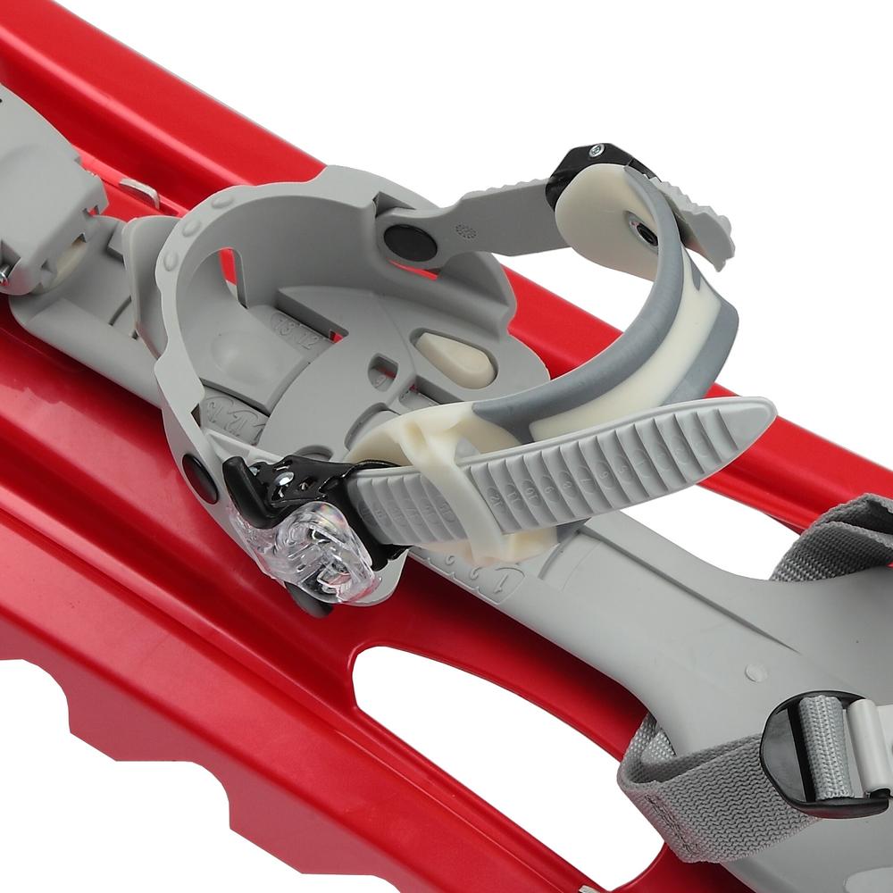 Exklusiv auf diesem Modell - Perimetrischer Rahmen: Dieser Rahmen bietet auf jeder Seite zwei harschähnliche Schneiden. Die Fläche des Rahmens im Bereich des Haupt- Auftrittspunkt des Schneeschuhes ist breiter. Somit erhält man mehr Stabilität auch im unregelmäßigem oder tiefen Schnee.