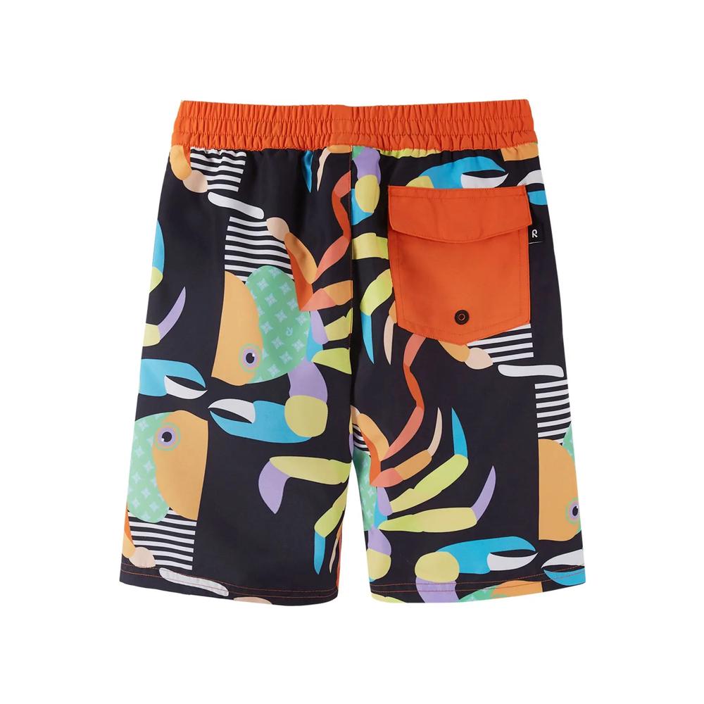 Diese Jungen Badeshort von Reima Papaija bietet Ihrem Kind einen selbstbewussten, positiv farbenfrohen Stil am Strand, kombiniert mit Komfort und UV-Schutz.