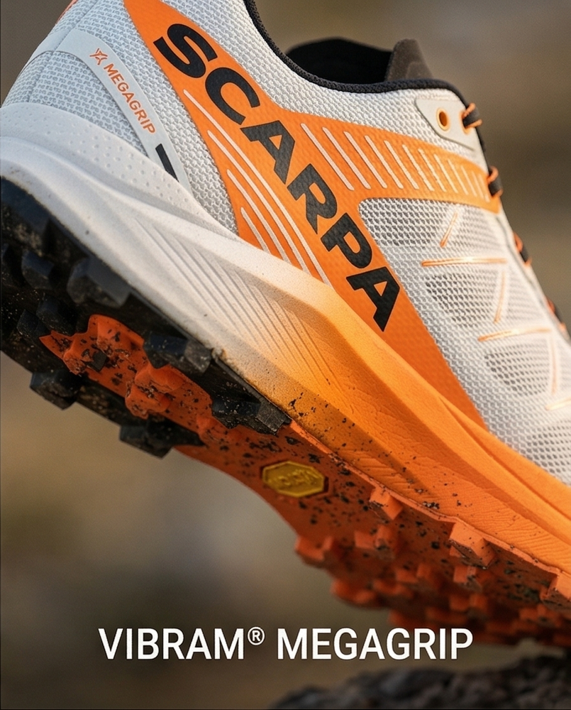 Die Sohle verfügt über eine Zwischensohle aus dem neuen BOUNCE FOAM, der einen exzellenten, elastischen Rebound und Unterstützung während der Laufphase bietet, kombiniert mit stoßdämpfenden Eigenschaften. Die Vibram®-Außensohle, hergestellt aus dem MEGAGRIP-Material und in einem exklusiven SCARPA-Design, liefert außergewöhnlichen Grip und Anpassungsfähigkeit auf allen Terrains.