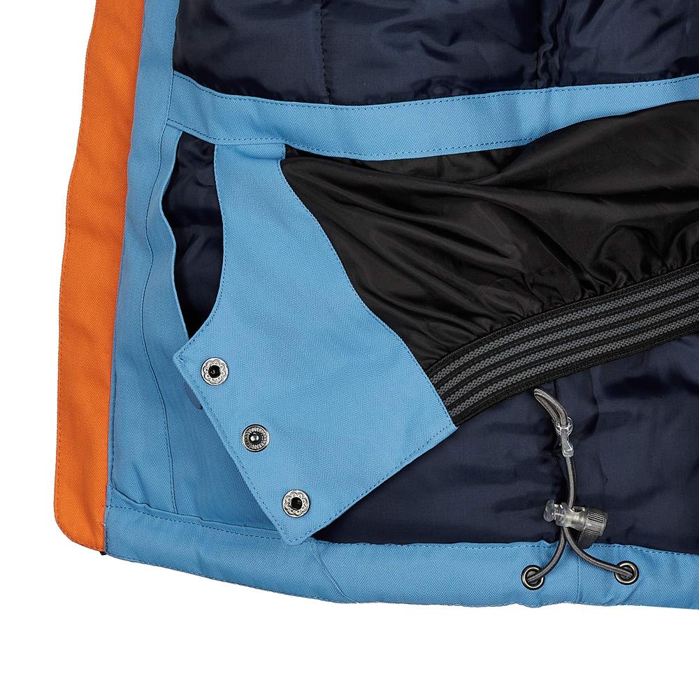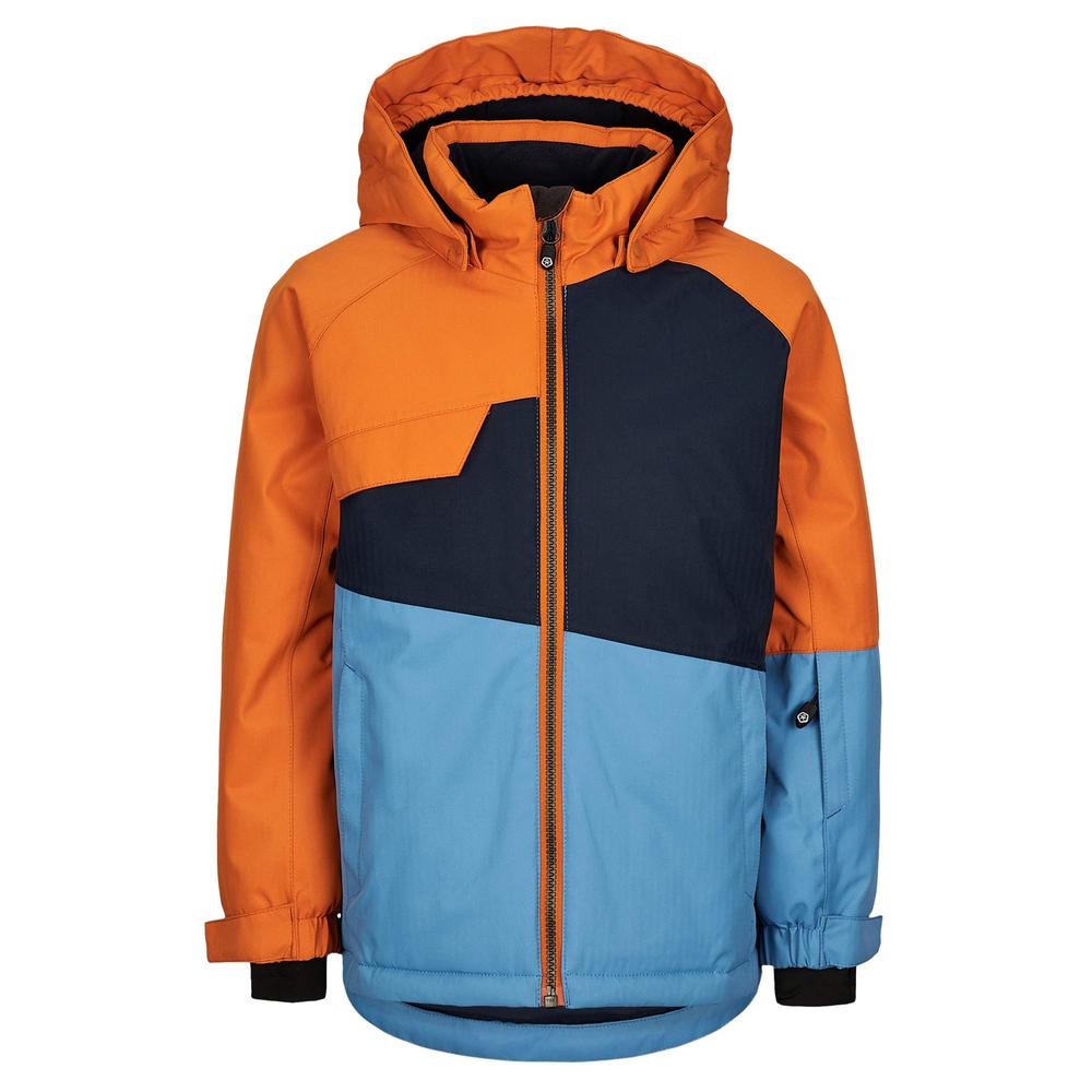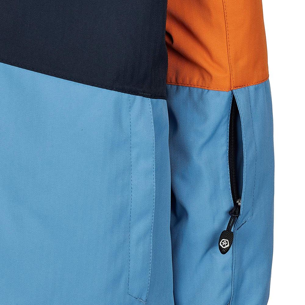 Durchdachte Features machen diese Jacke zum perfekten Begleiter im Schnee: Eine abtrennbare Kapuze mit Elastikeinsatz, ein unterlegter Frontreißverschluss mit Kinnschutz und ein Schneefang mit Haftgummi-Saum halten Wind und Kälte draußen. Praktische Taschenlösungen – darunter eine RV-Ärmeltasche, zwei RV-Einschubtaschen und eine Innentasche mit Namensschild – bieten Platz für alles Wichtige.